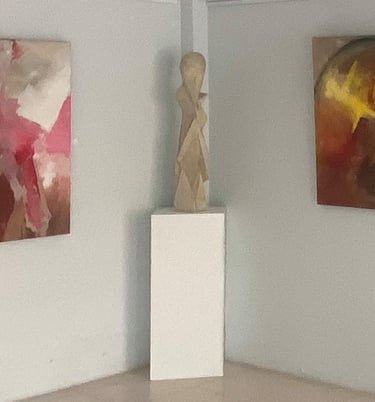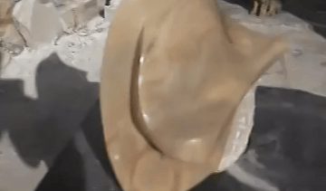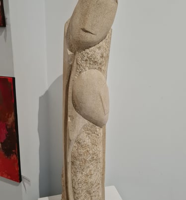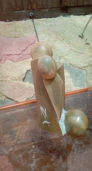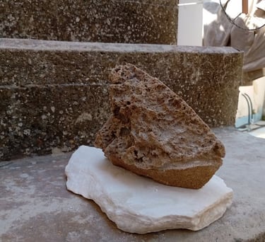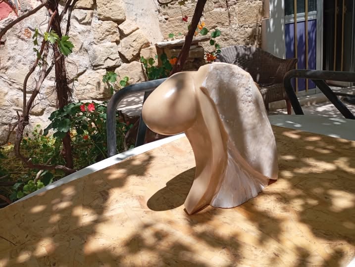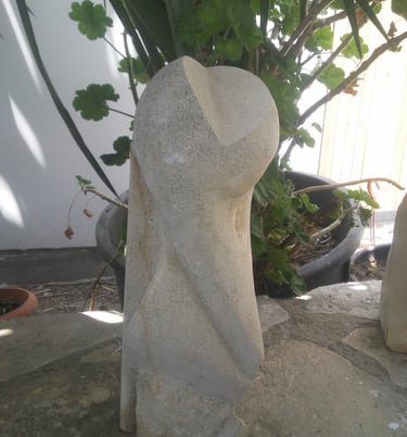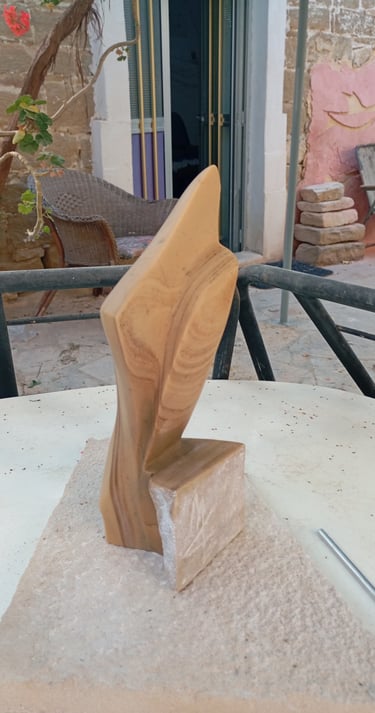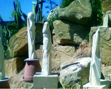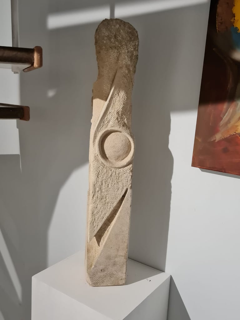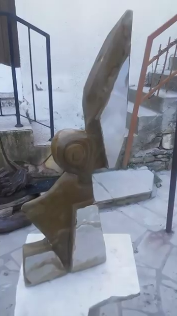 ”Macarie Laurentiu iubește piatra Ciprului, iubește calitățile sale unice, oferind noi valențe în sculpturile sale, adevărate și rare opere de artă contemporană, descrise pe scurt ca fiind sub semnul stilizării cognitive și al geometrizării cerebrale.”
