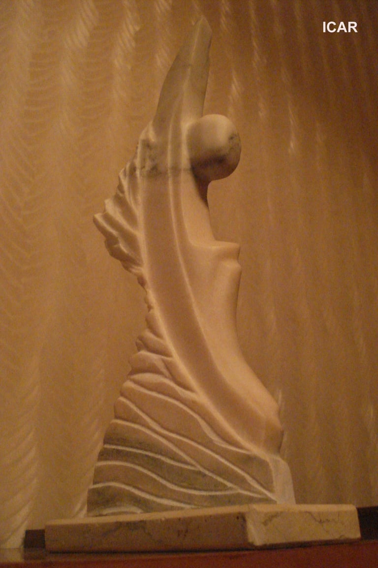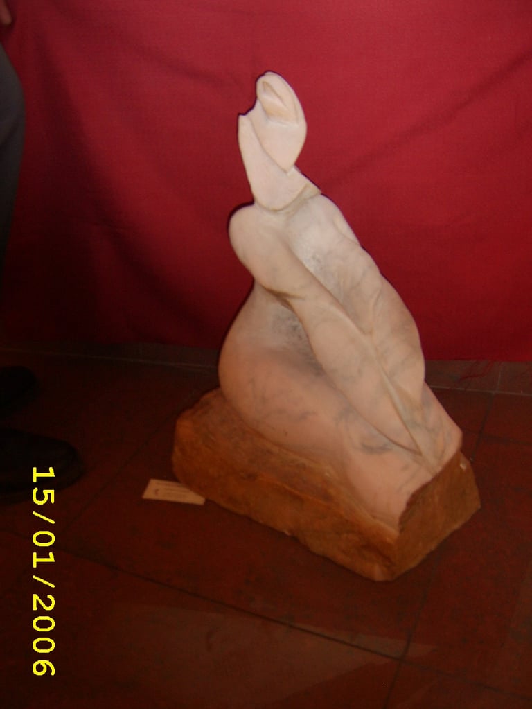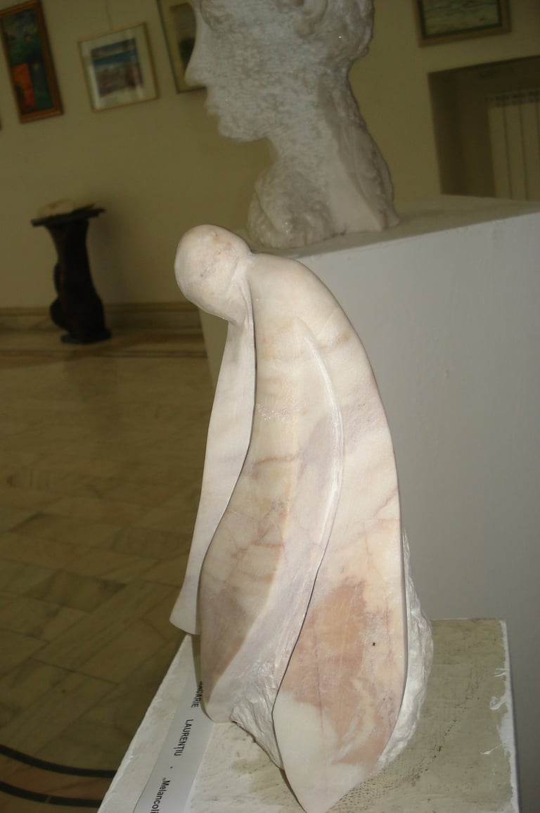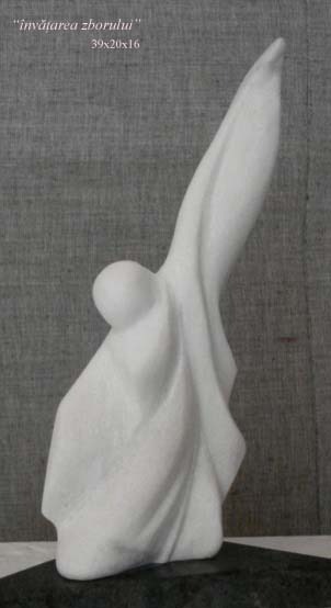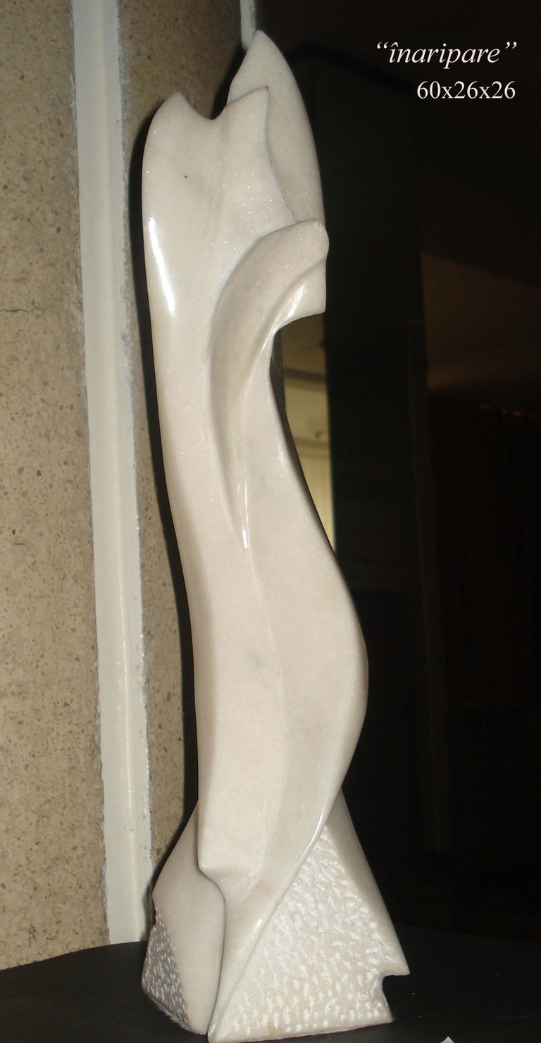 ”Aducand o necesara nota de verticalitate expozitiei si compltand nevoia de ”populare” volumetrica a spatiului expozitional, Laurentiu Macarie isi reconfirma si amplifica datele de ”rapsod al marmurei”.